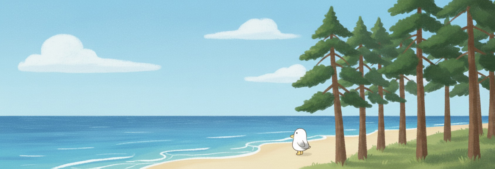 용감한 갈매기 끼끼는 평범한 일상을 살아가는 사람들에게 새로운 도전의 용기를 건네는 캐릭터입니다.